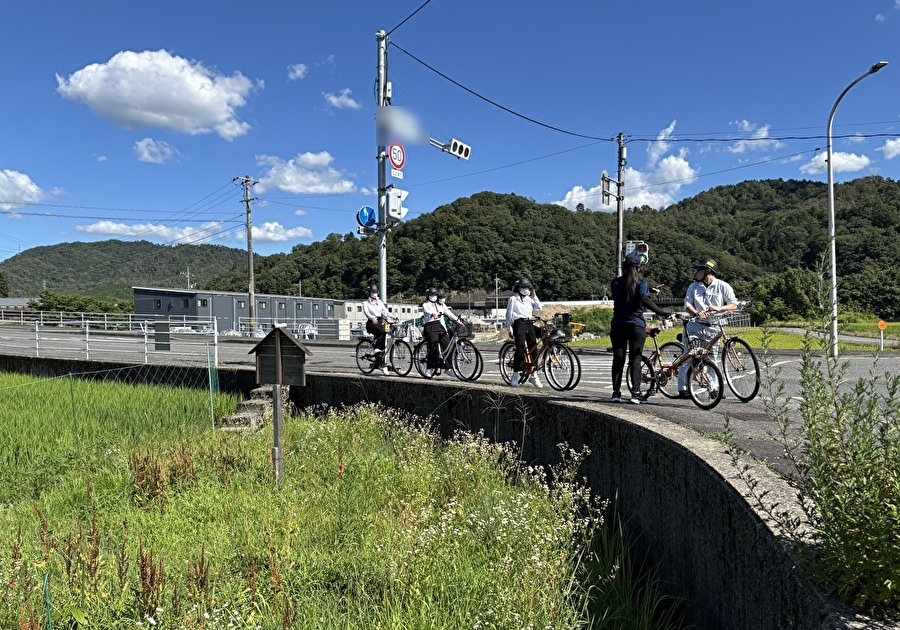 実習生は、来日前に研修センターで受講した自転車講習の内容を振り返りながら、西海協職員と一緒に実際の道路を走行しました。