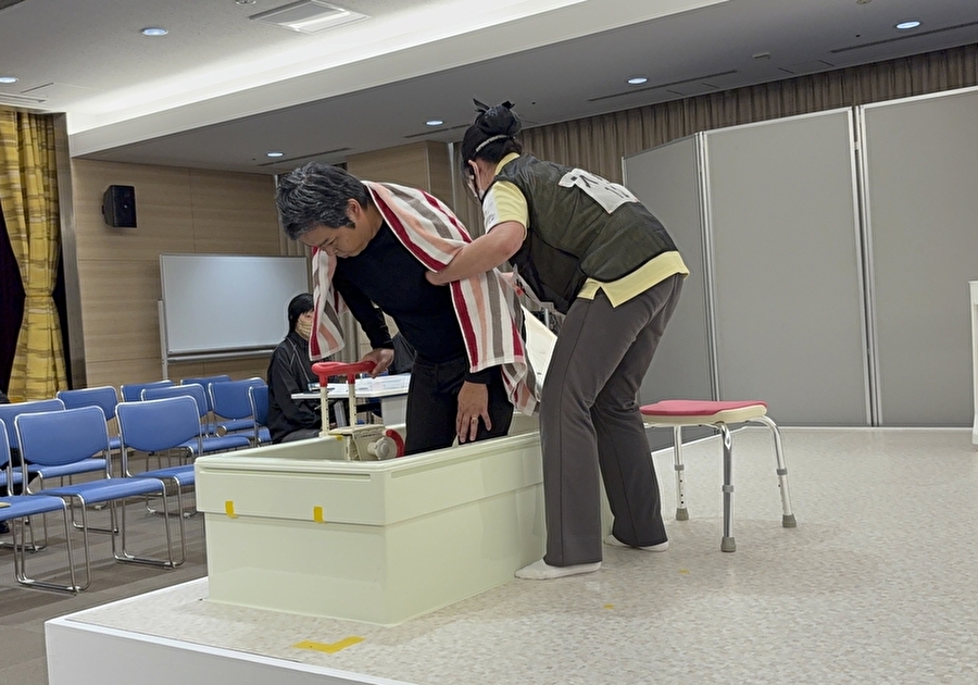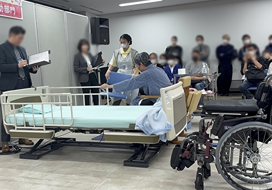 競技は、「食事介助部門」「入浴介助部門」「排泄介助部門」の3部門に分かれて行われ、広島市内の介護養成校の教員の皆さまが審査員として、専門的な視点から評価してくださいました。