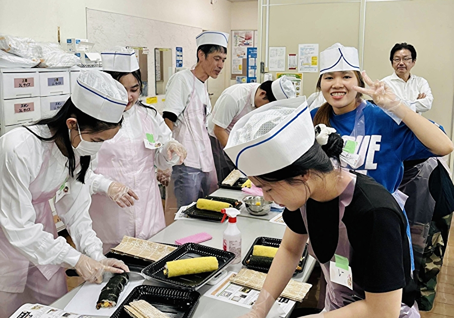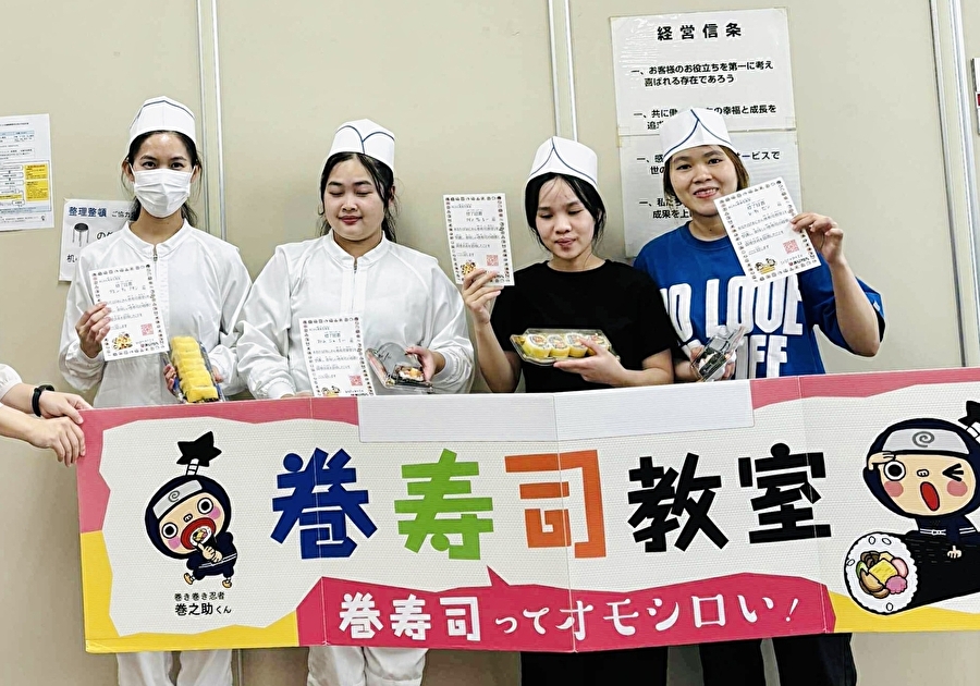 広島県で技能実習を行ってきたベトナム人技能実習生が、日本の伝統的な巻き寿司づくり講習会に参加しました。